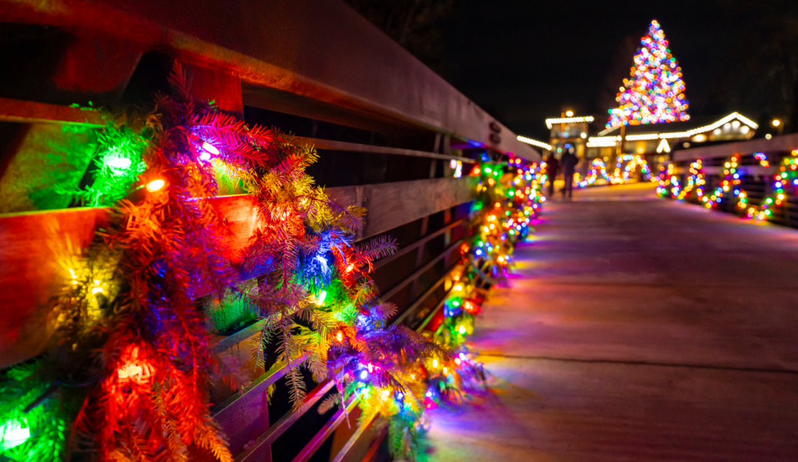 Enjoy a magical evening walk through our beautifully lit park! The holiday lights will shine from 3:00 to 9:00 p.m., and Railroad Bridge Park will remain open during those hours.
